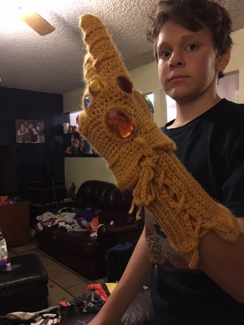 Was to have it in a box all finished, with some purple felt and package fill representing Thanos's severed arm sticking out of the back.